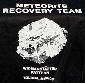 Meteorite Recovery Team T-shirts in black only. Shooting star